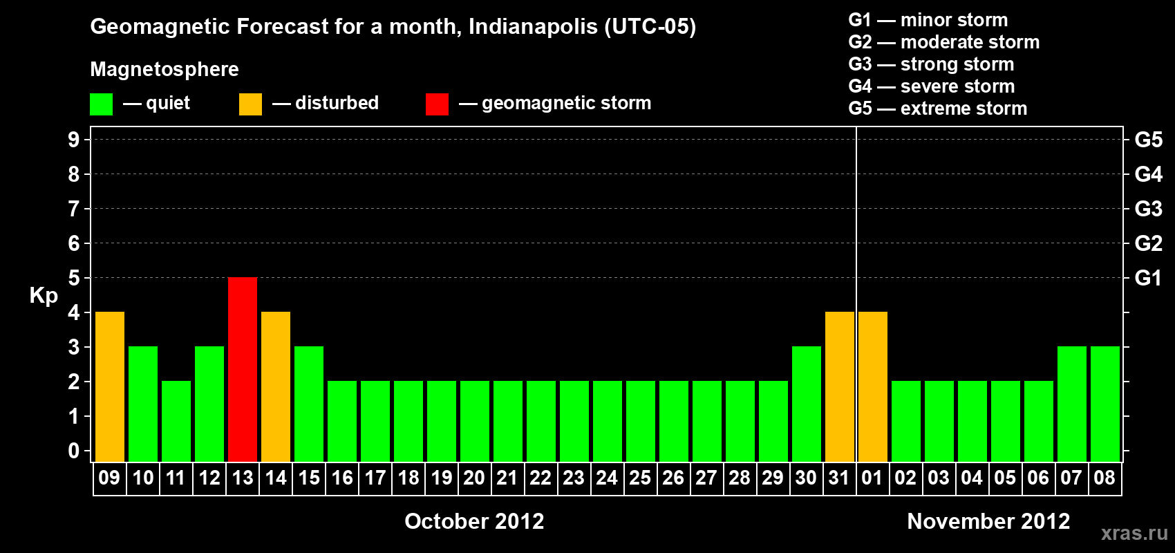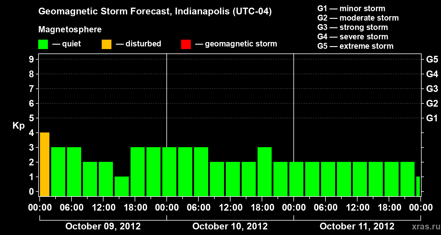 Geomagnetic storm forecast in Indianapolis for Oct 09, 2012