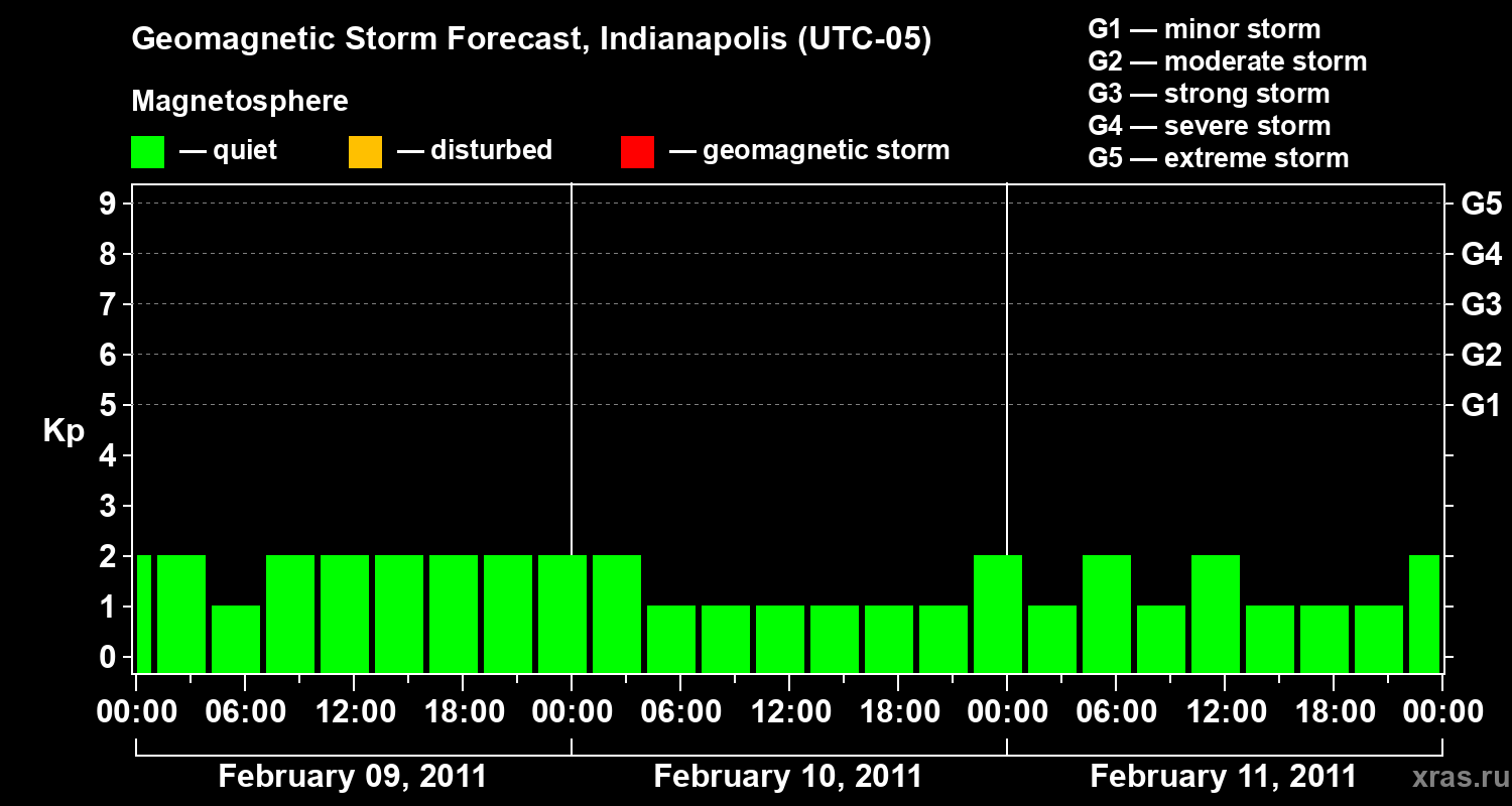 Geomagnetic storm forecast in Indianapolis for Feb 09, 2011