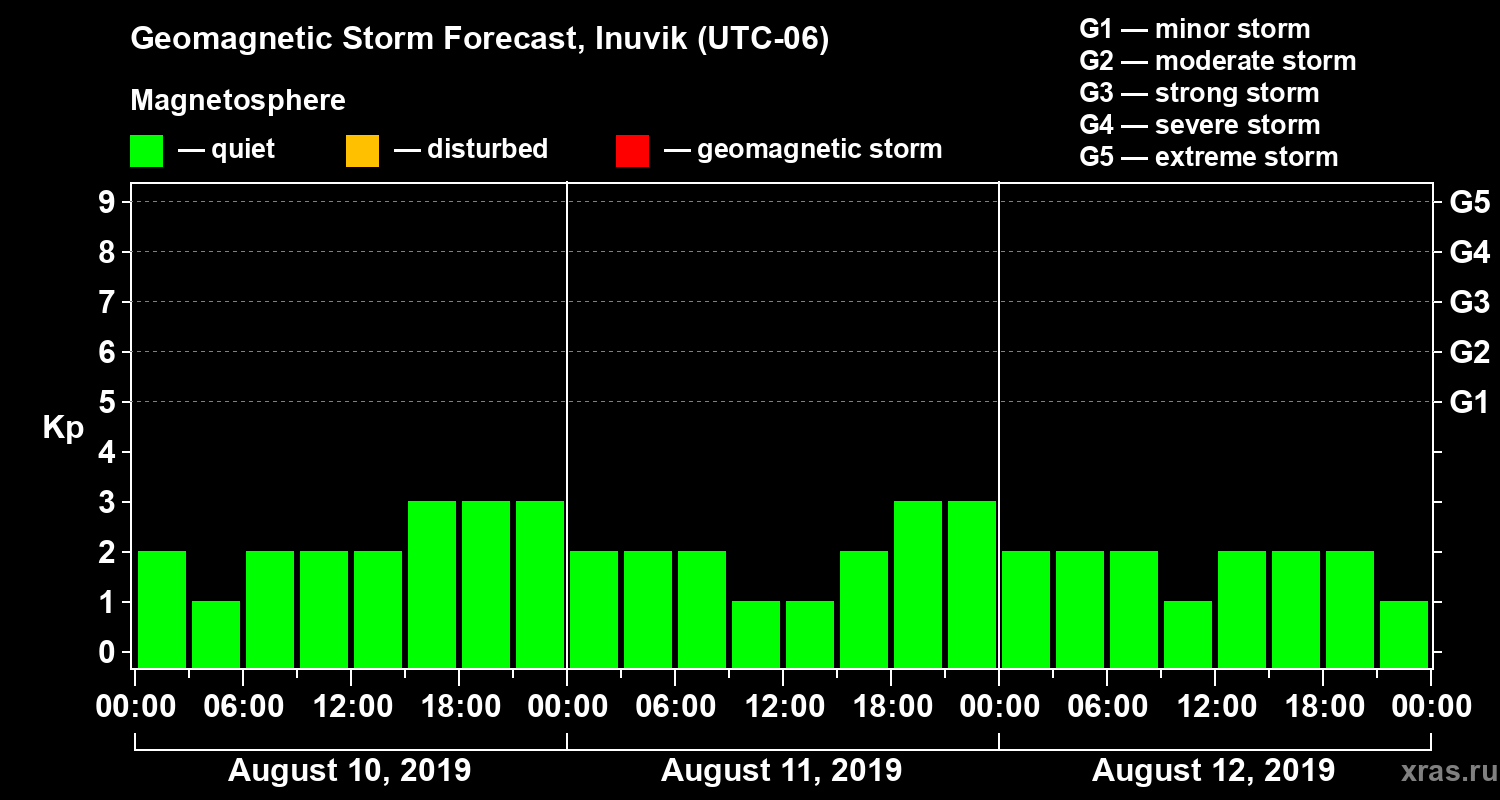 Geomagnetic storm forecast in Inuvik for Aug 10, 2019