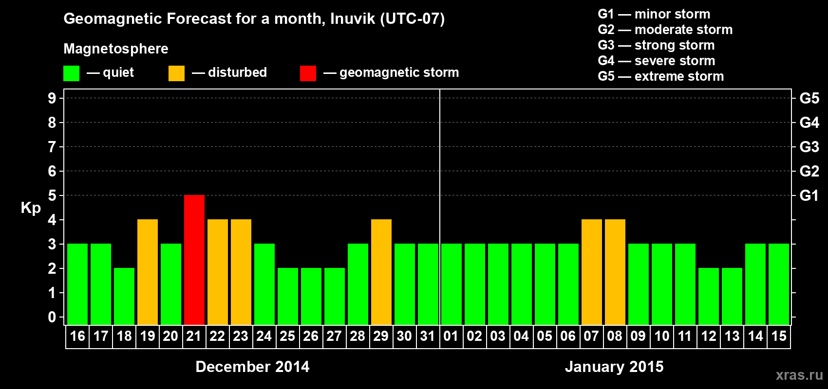 Geomagnetic storm forecast in Inuvik for Dec 16, 2014