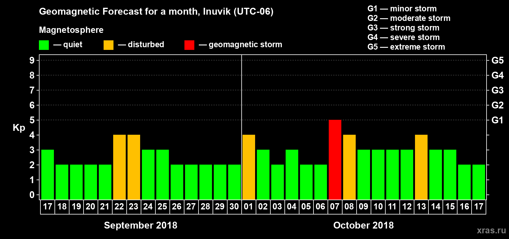 Geomagnetic storm forecast in Inuvik for Sep 17, 2018