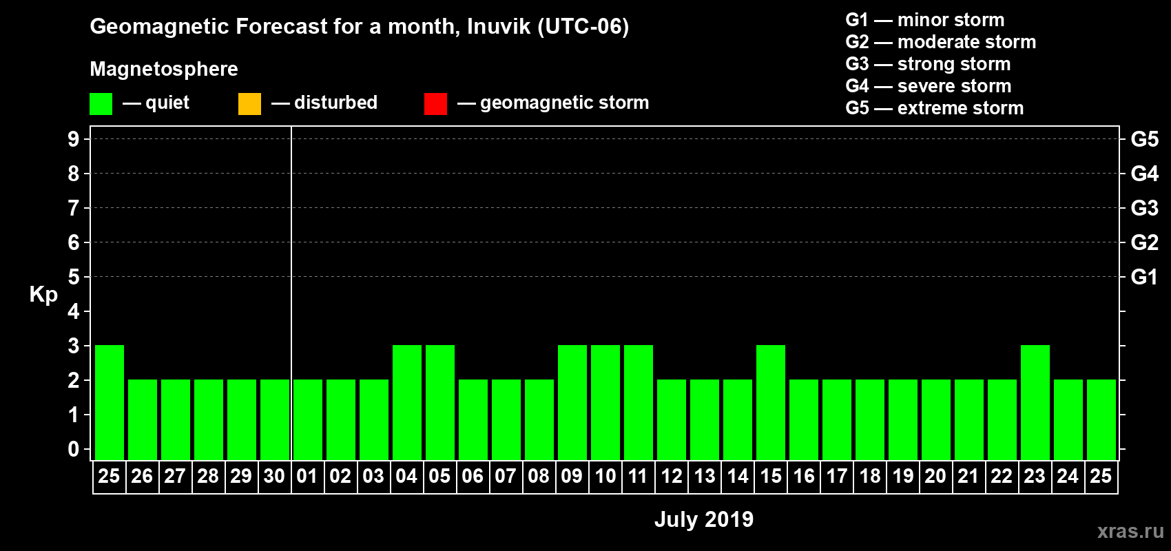 Geomagnetic activity forecast in Inuvik — Jun 25, 2019