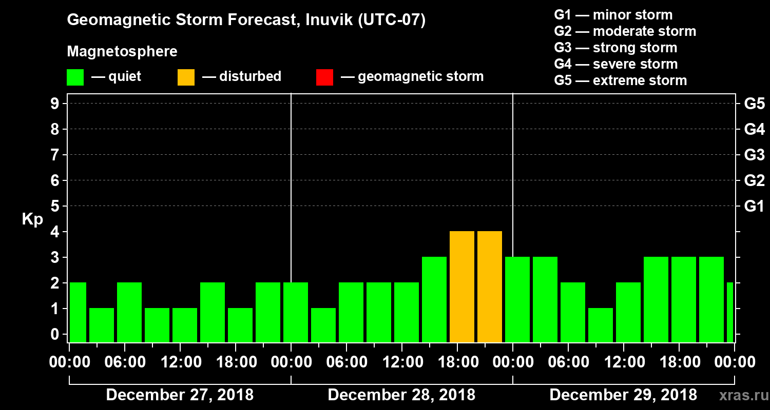 Geomagnetic storm forecast in Inuvik for Dec 27, 2018