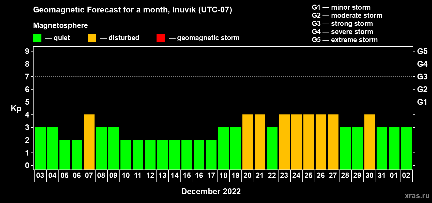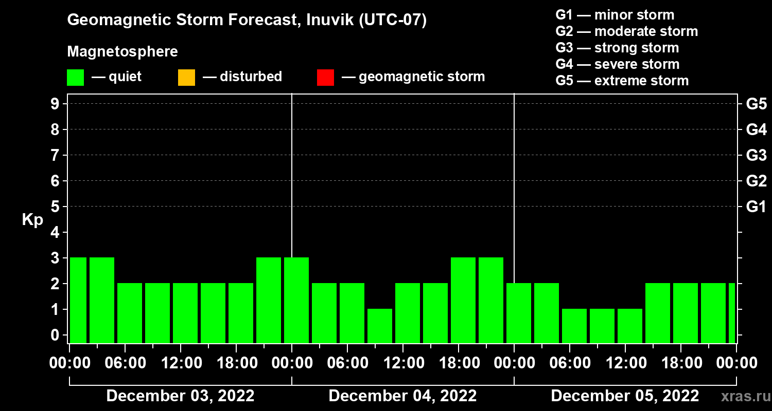 Geomagnetic storm forecast in Inuvik for Dec 03, 2022