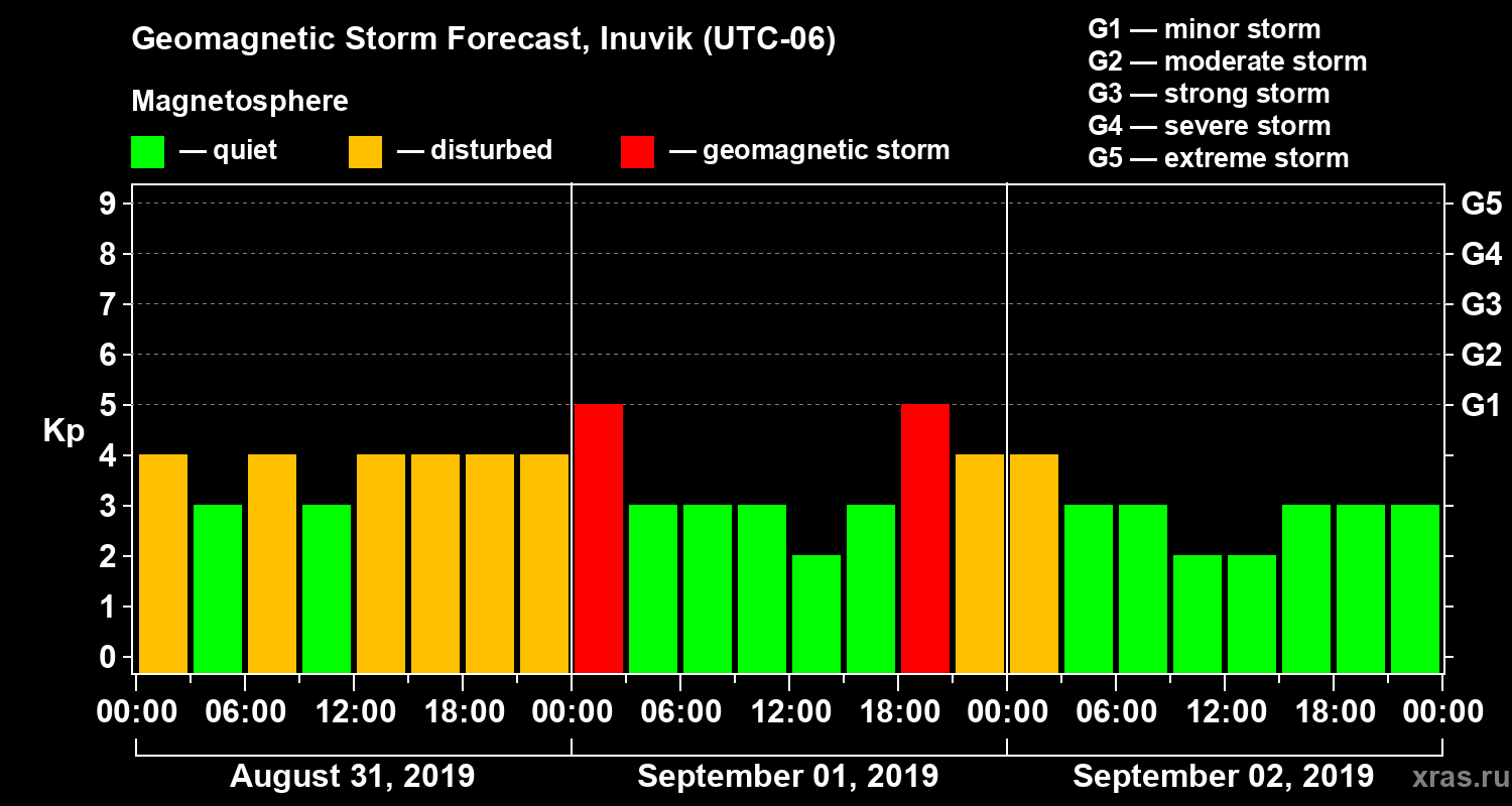 Geomagnetic storm forecast in Inuvik for Aug 31, 2019