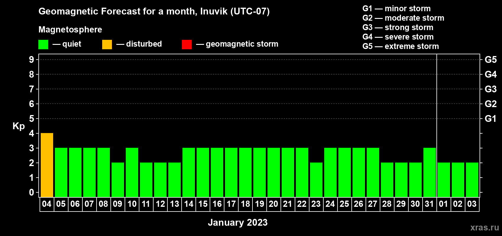 Geomagnetic activity forecast in Inuvik — Jan 04, 2023