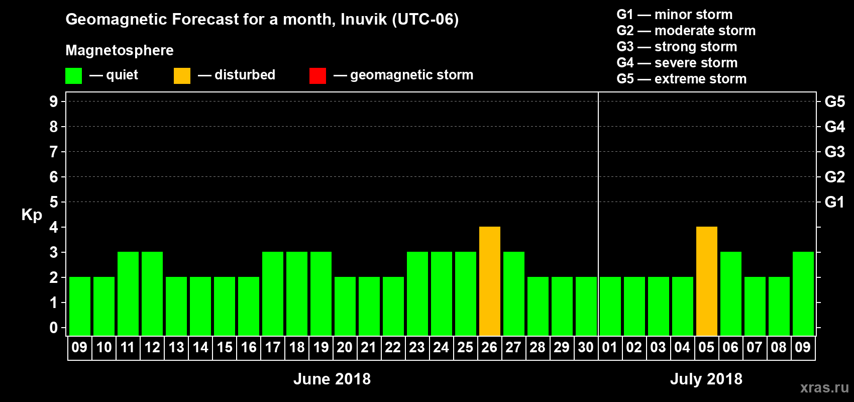 Geomagnetic storm forecast in Inuvik for Jun 09, 2018