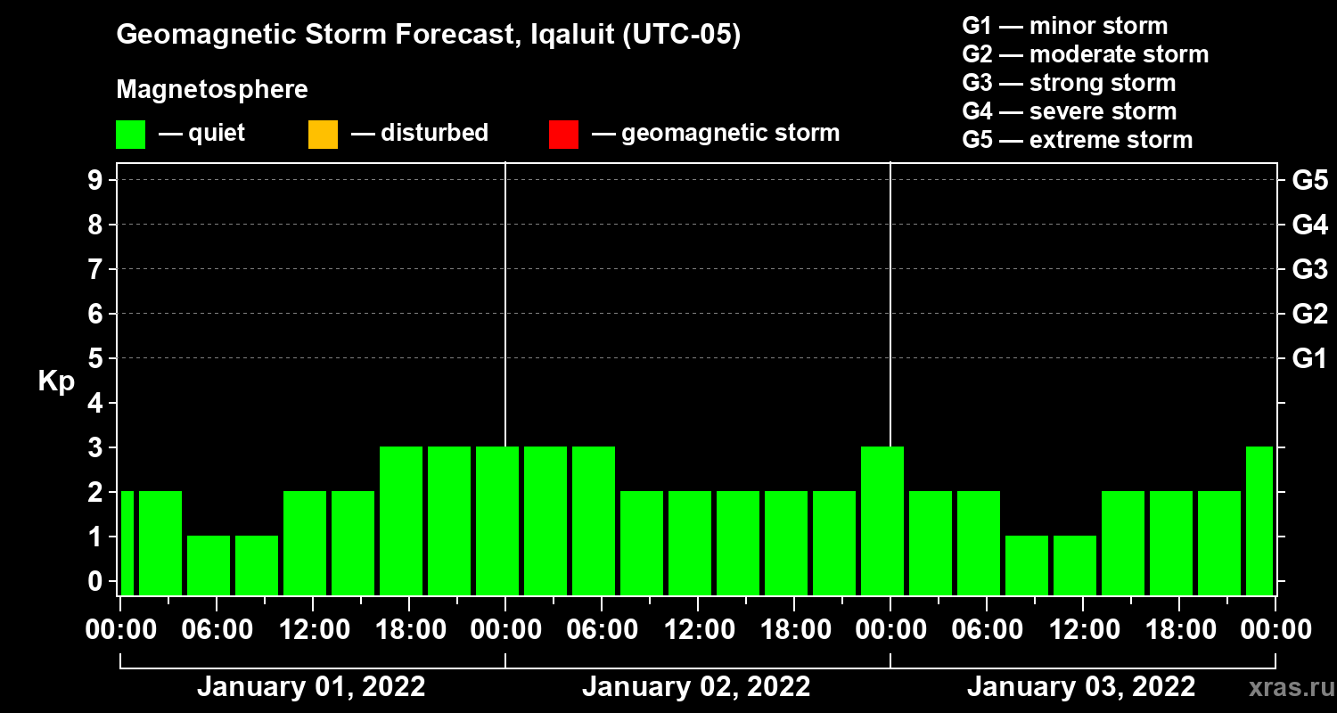 Geomagnetic storm forecast in Iqaluit for Jan 01, 2022