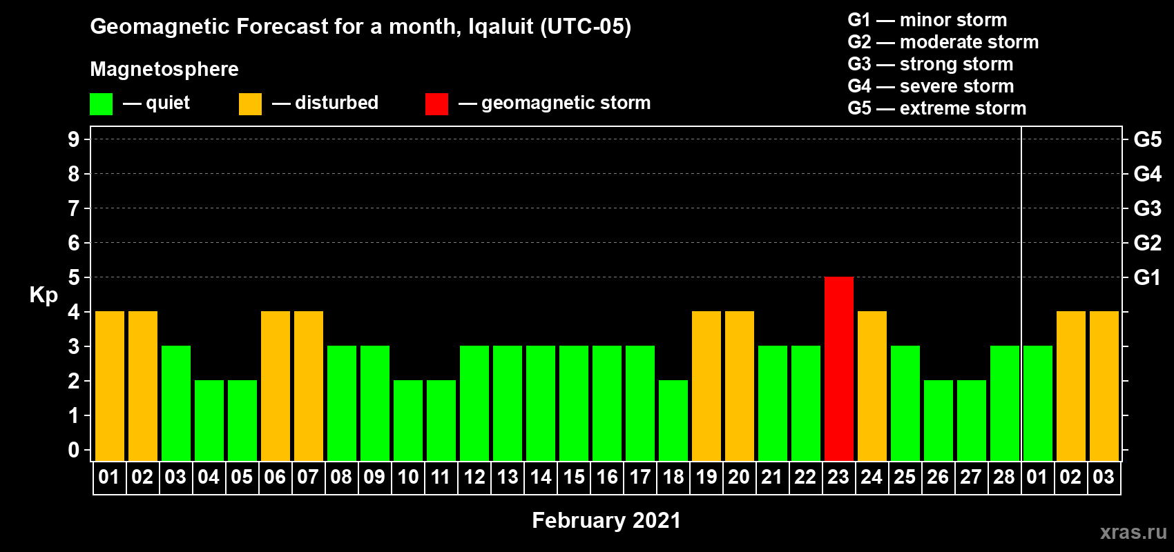 Geomagnetic storm forecast in Iqaluit for Feb 01, 2021