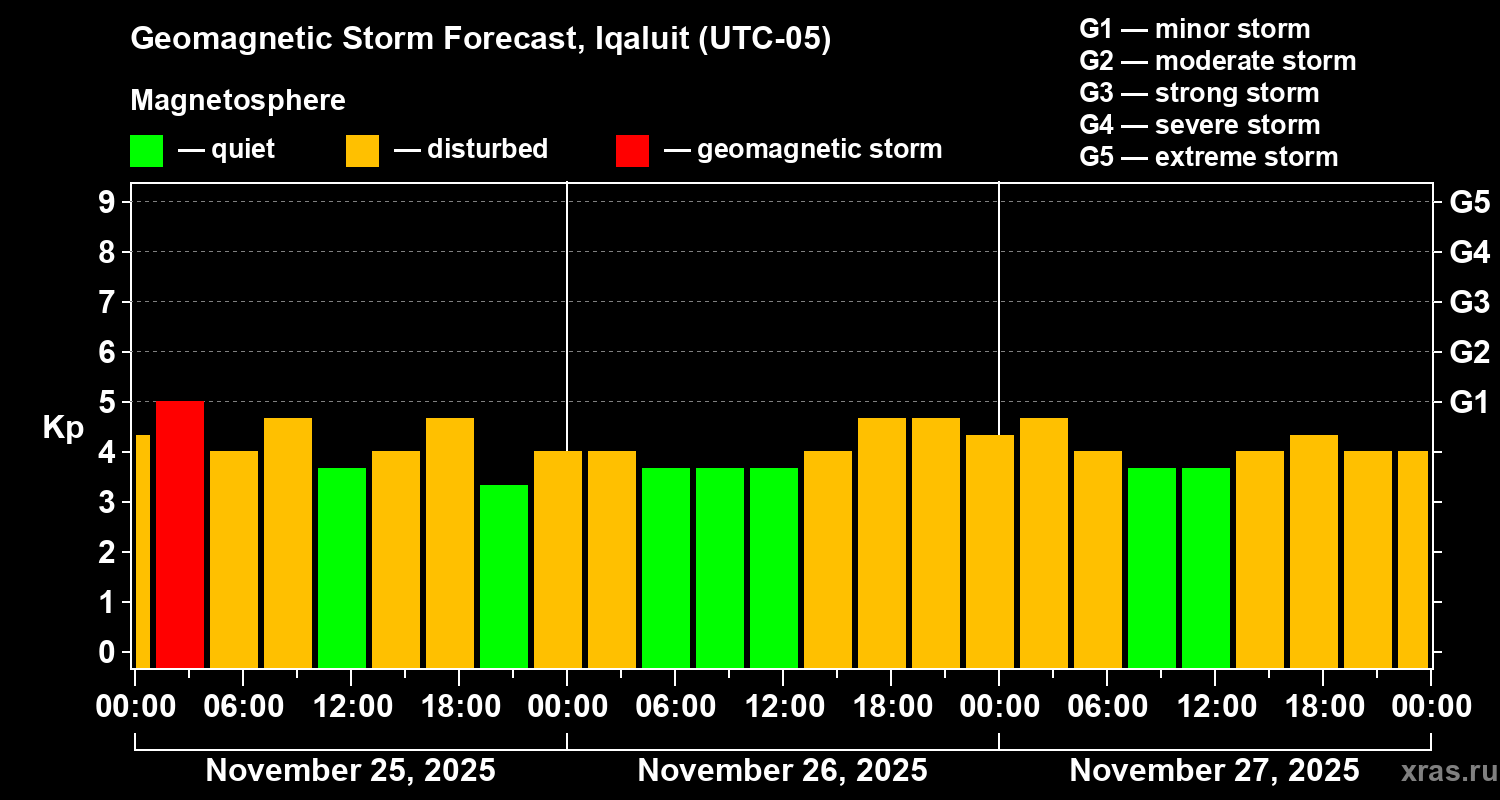 Geomagnetic storm forecast in Iqaluit for Nov 25, 2025
