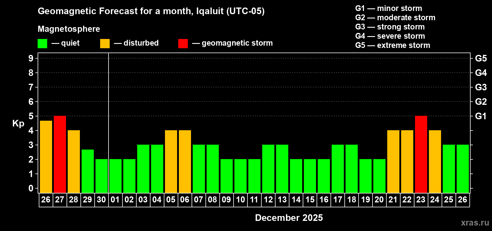 Geomagnetic storm forecast in Iqaluit for Nov 26, 2025