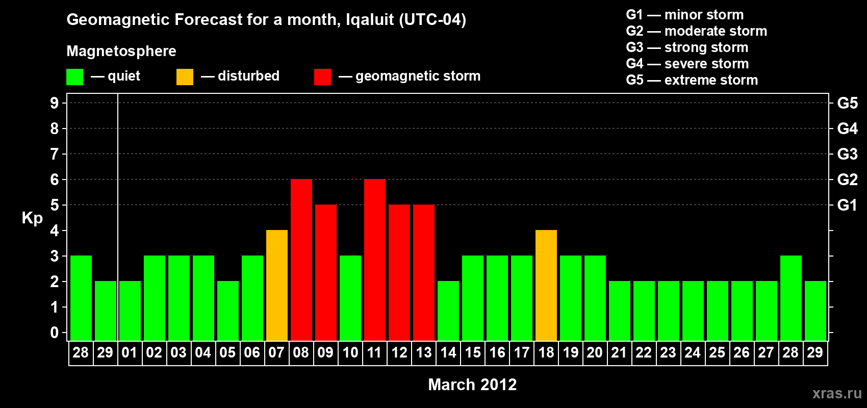 Geomagnetic activity forecast in Iqaluit — Feb 28, 2012