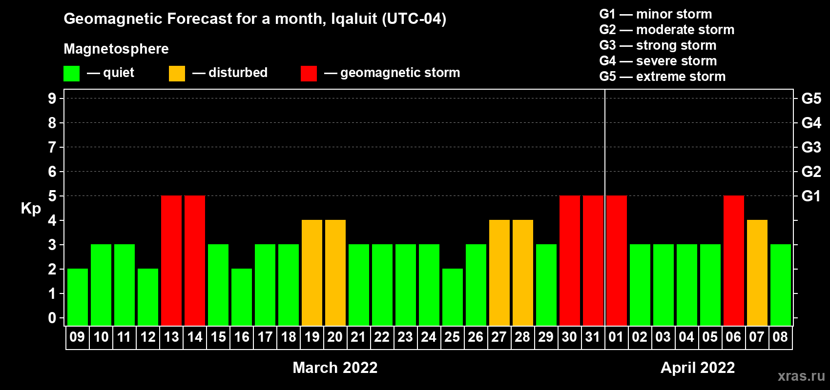 Geomagnetic activity forecast in Iqaluit — Mar 09, 2022