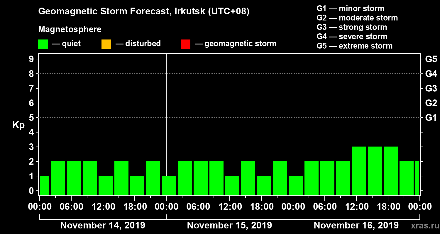 Geomagnetic storm forecast in Irkutsk for Nov 14, 2019