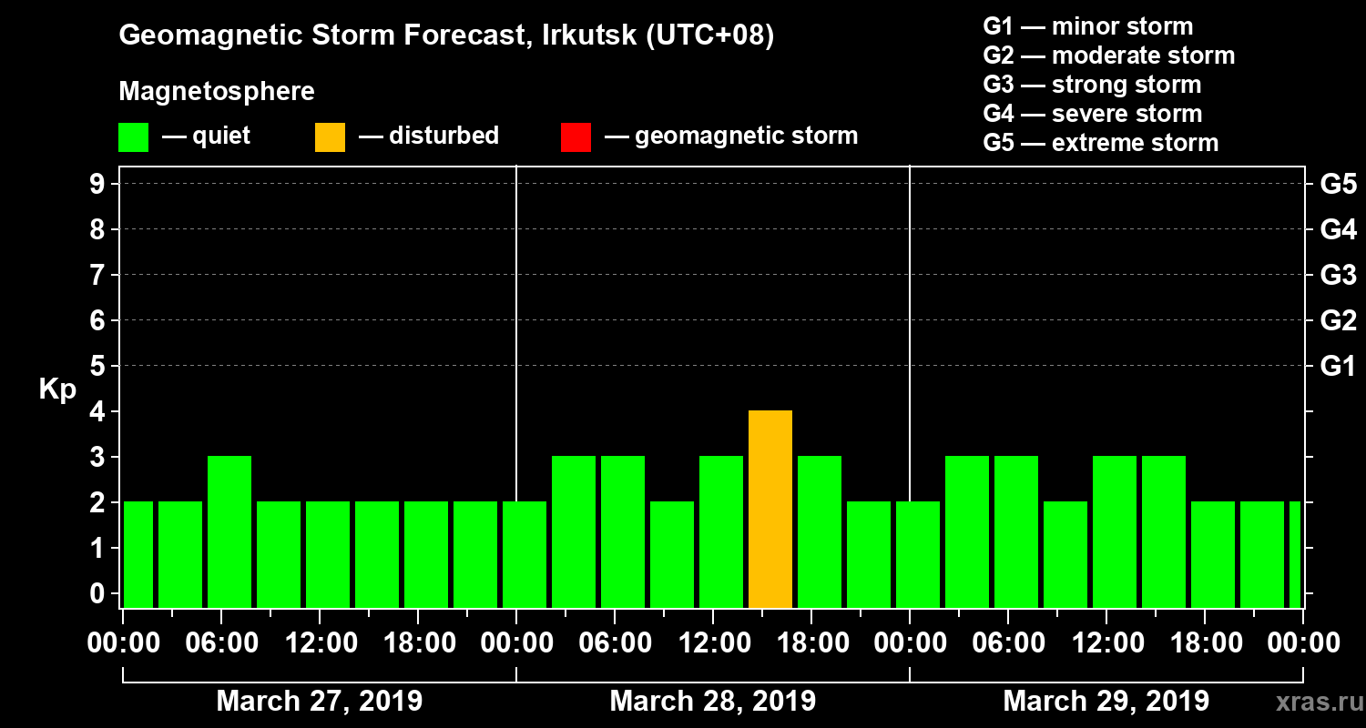 Geomagnetic storm forecast in Irkutsk for Mar 27, 2019