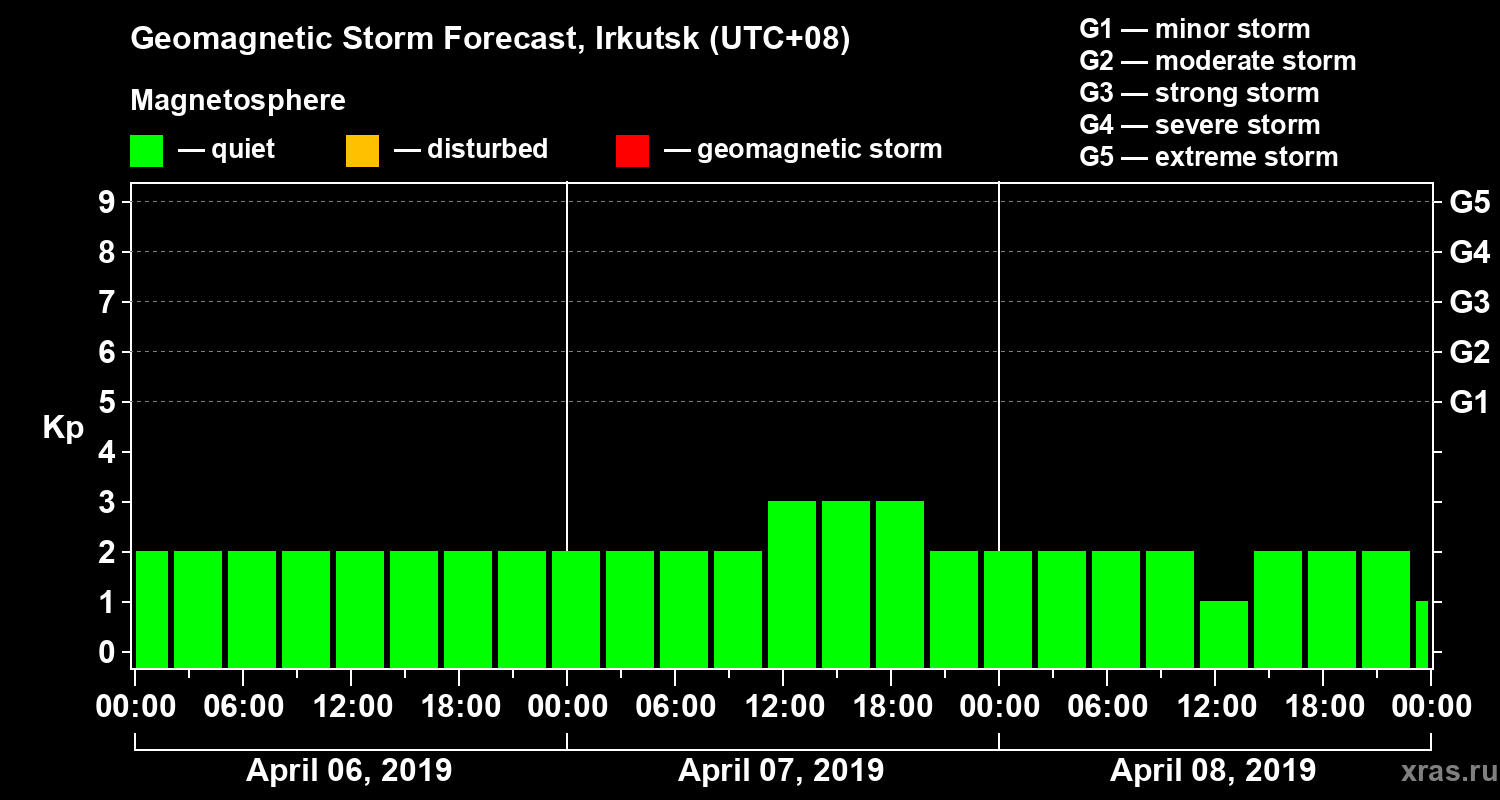 Geomagnetic storm forecast in Irkutsk for Apr 06, 2019