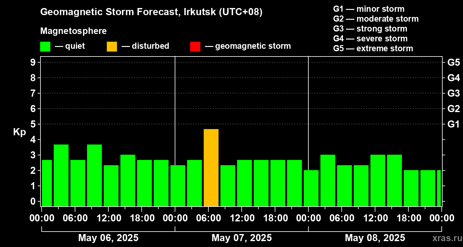 Geomagnetic storm forecast in Irkutsk for May 06, 2025