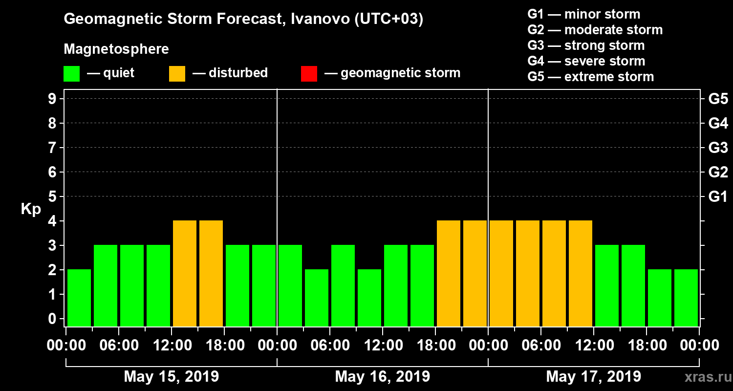 Geomagnetic storm forecast in Ivanovo for May 15, 2019