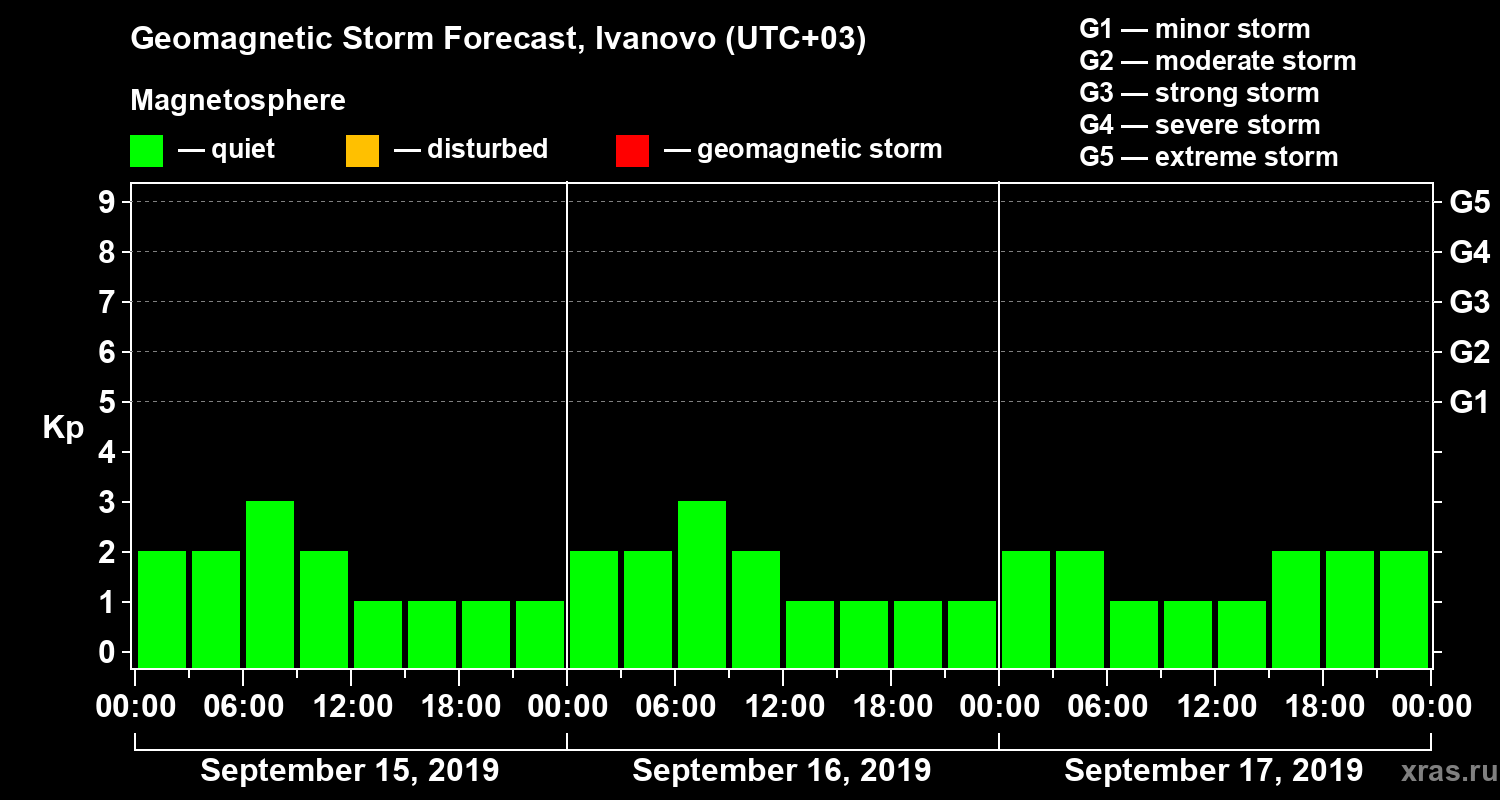 Geomagnetic storm forecast in Ivanovo for Sep 15, 2019