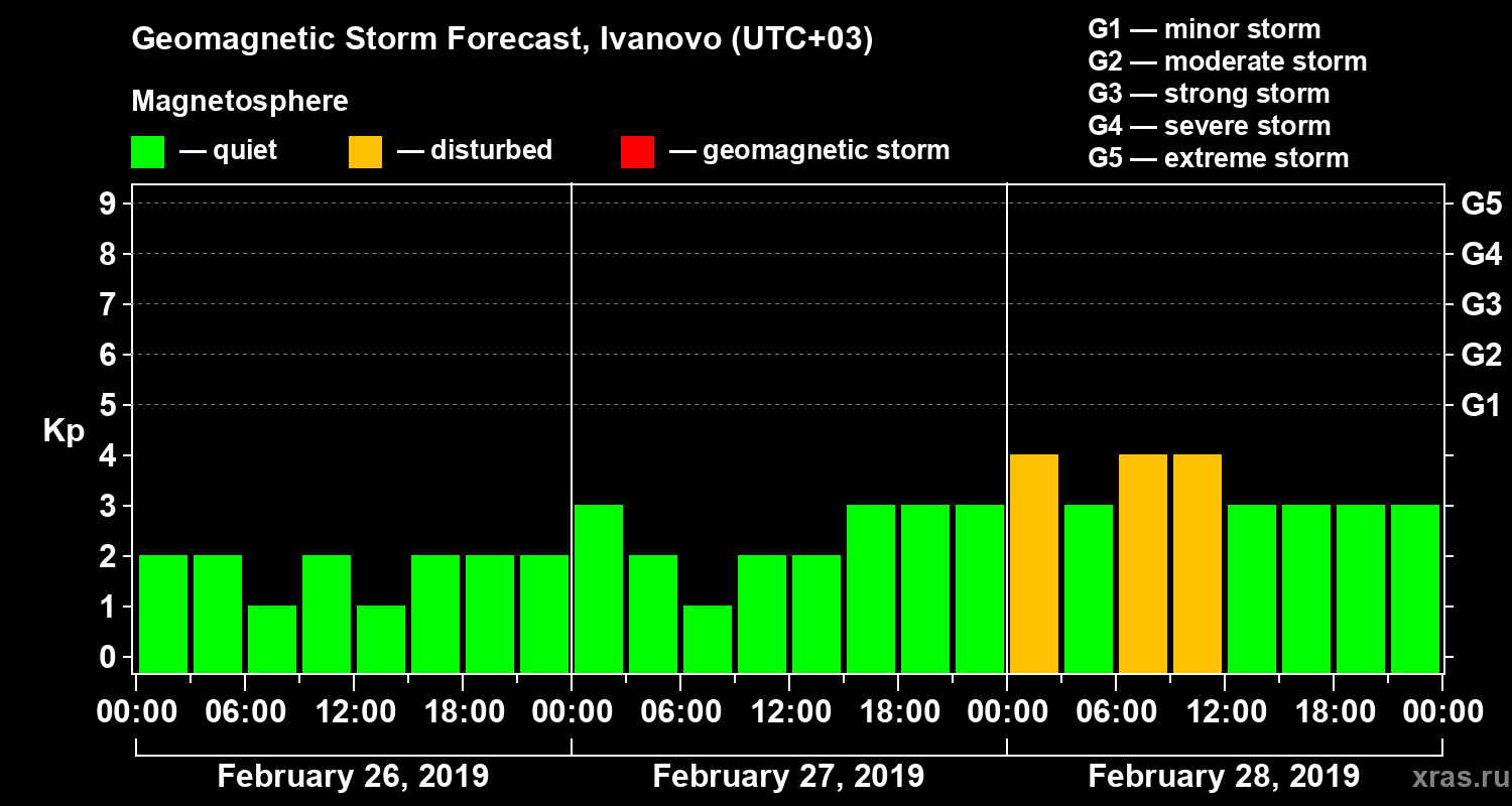 Geomagnetic storm forecast in Ivanovo for Feb 26, 2019