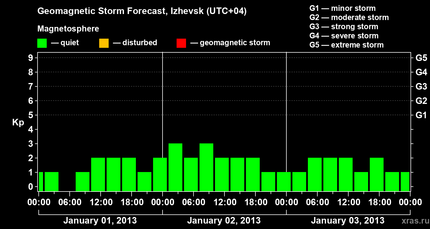 Geomagnetic storm forecast in Izhevsk for Jan 01, 2013