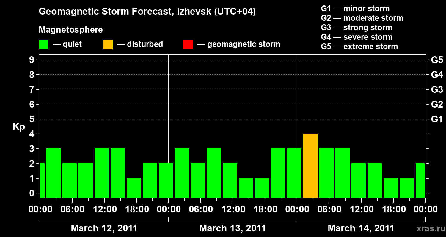 Geomagnetic storm forecast in Izhevsk for Mar 12, 2011