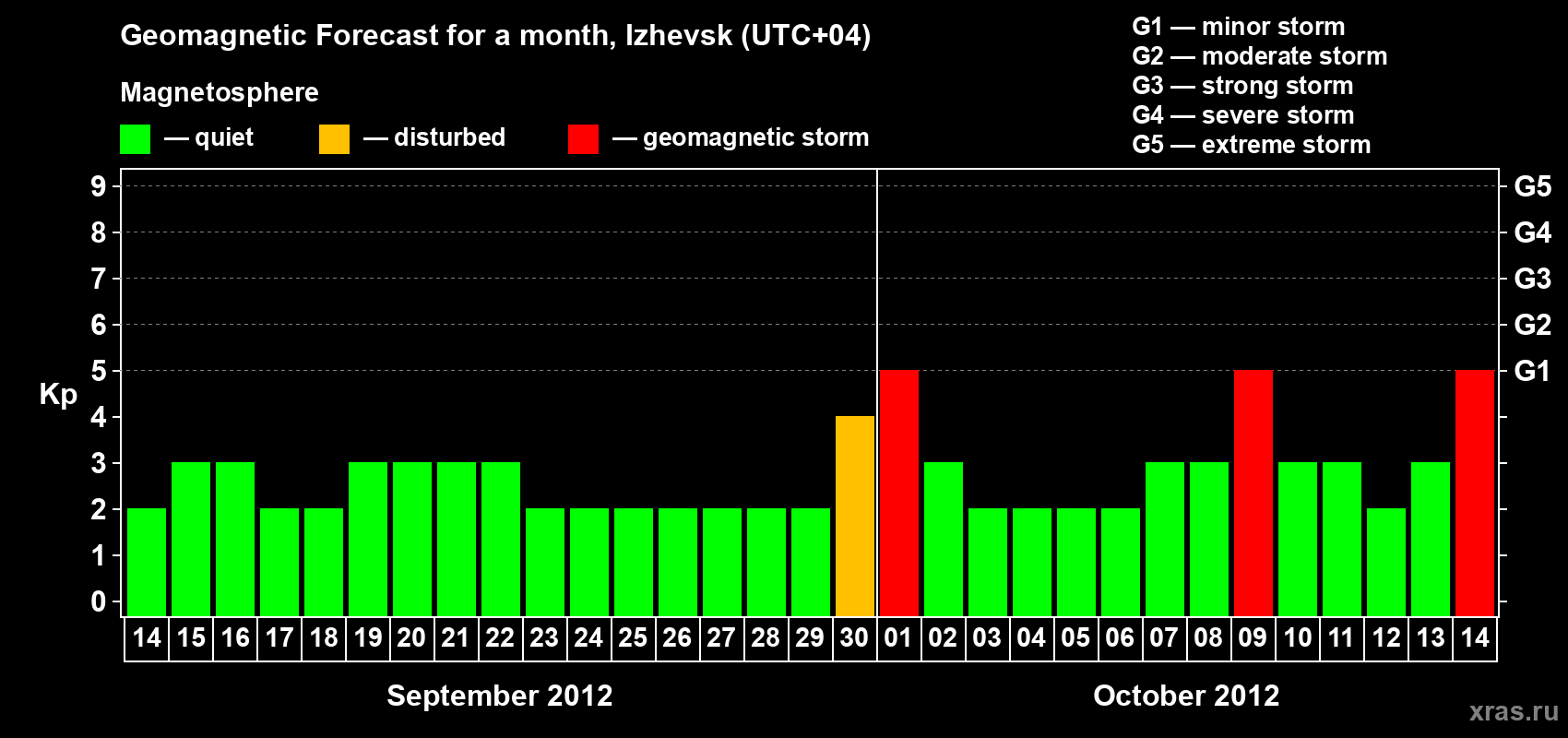 Geomagnetic storm forecast in Izhevsk for Sep 14, 2012