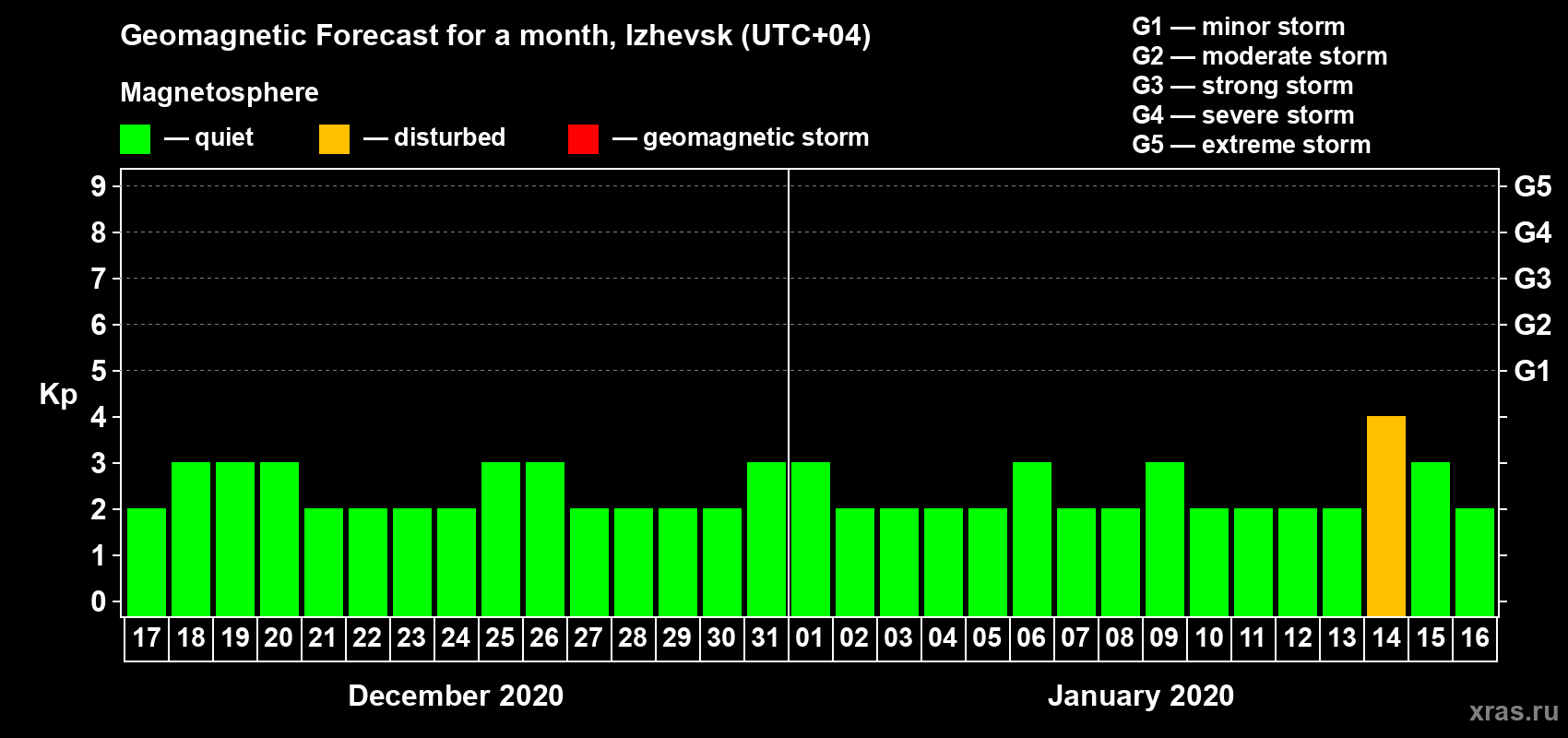 Geomagnetic storm forecast in Izhevsk for Dec 17, 2019