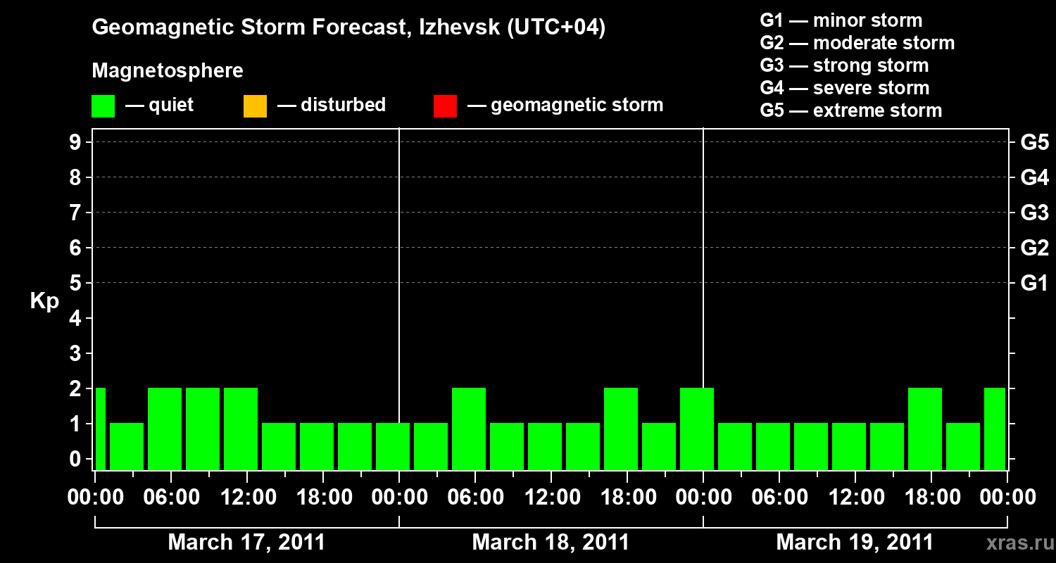 Geomagnetic storm forecast in Izhevsk for Mar 17, 2011
