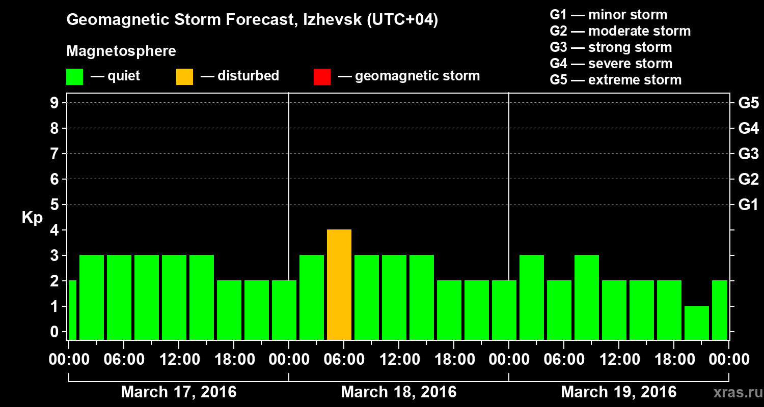Geomagnetic storm forecast in Izhevsk for Mar 17, 2016