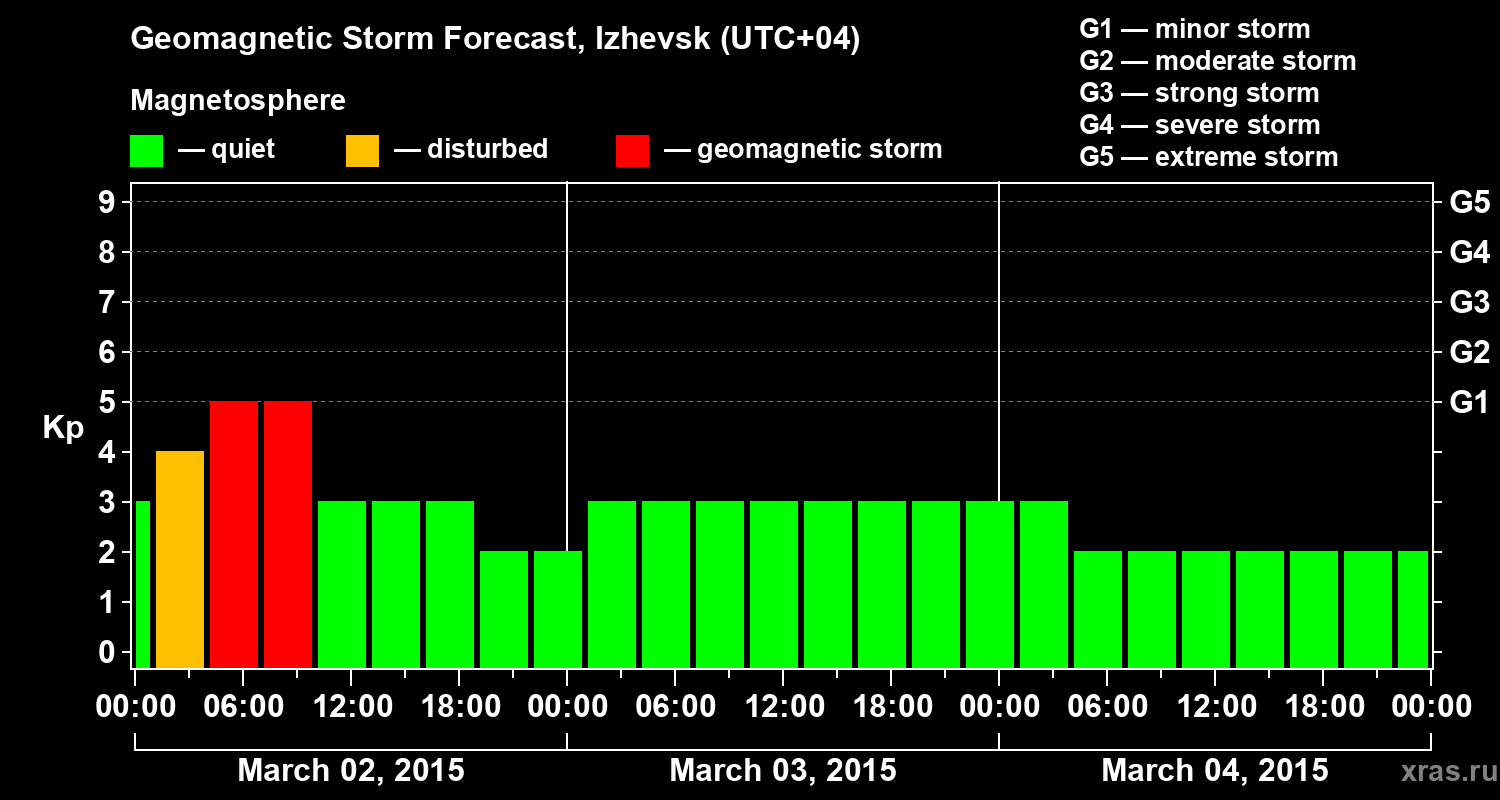 Geomagnetic storm forecast in Izhevsk for Mar 02, 2015