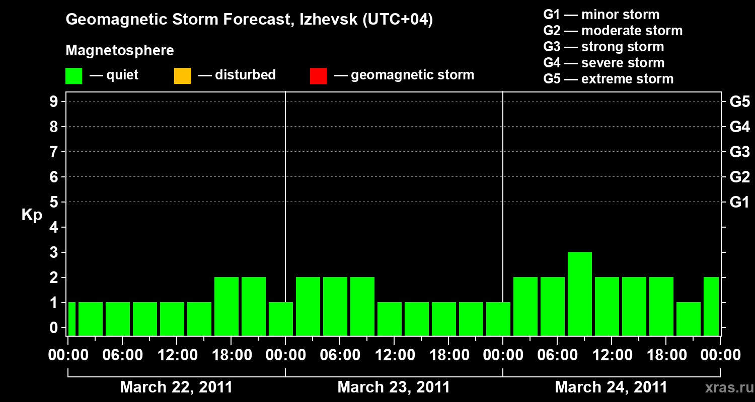 Geomagnetic activity forecast in Izhevsk — Mar 22, 2011