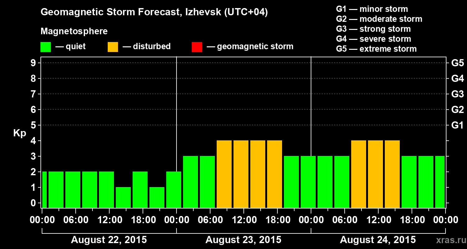 Geomagnetic activity forecast in Izhevsk — Aug 22, 2015
