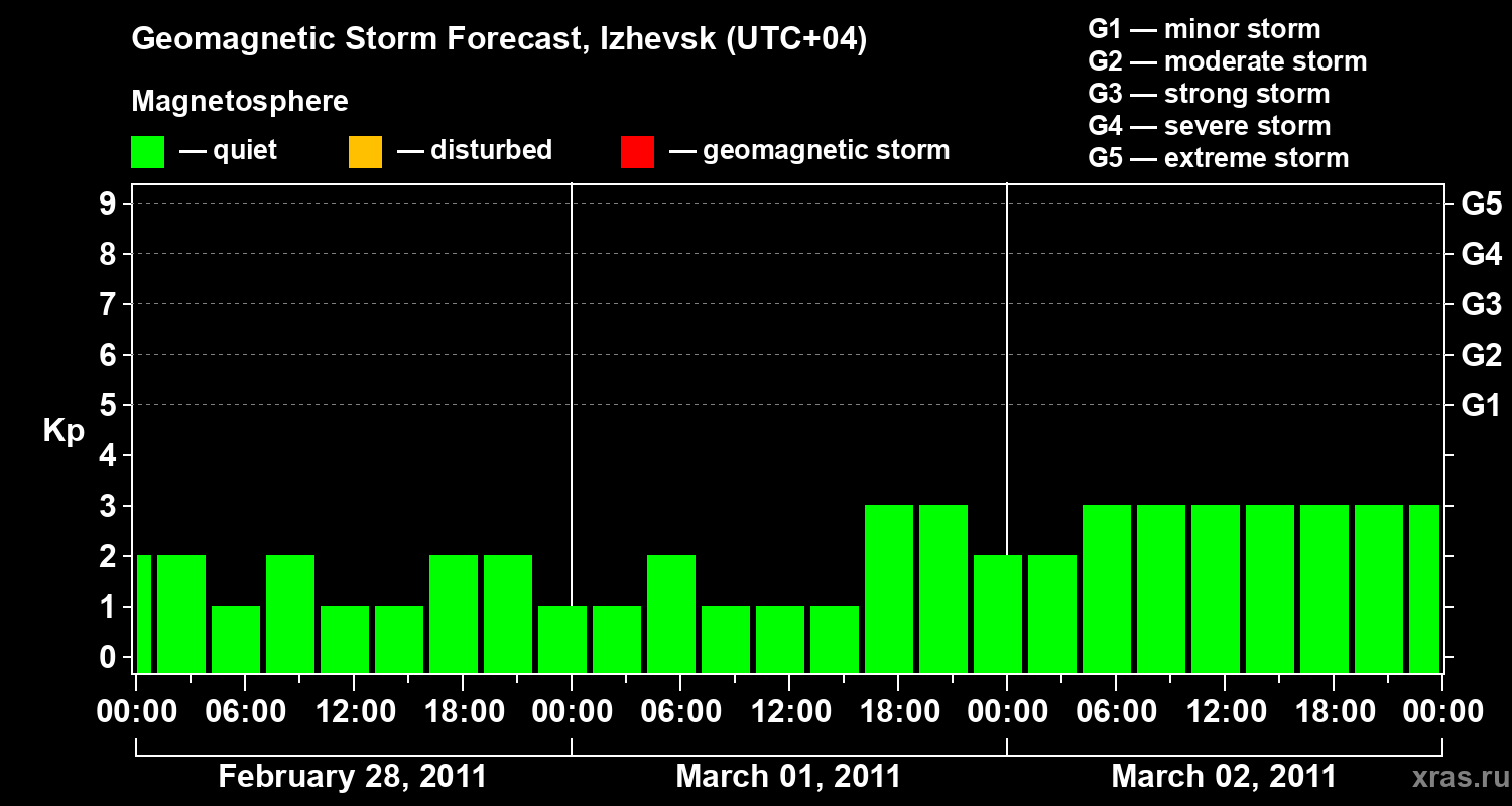 Geomagnetic storm forecast in Izhevsk for Feb 28, 2011