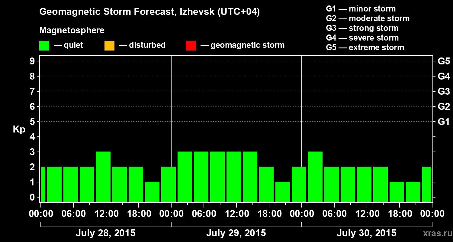 Geomagnetic activity forecast in Izhevsk — Jul 28, 2015