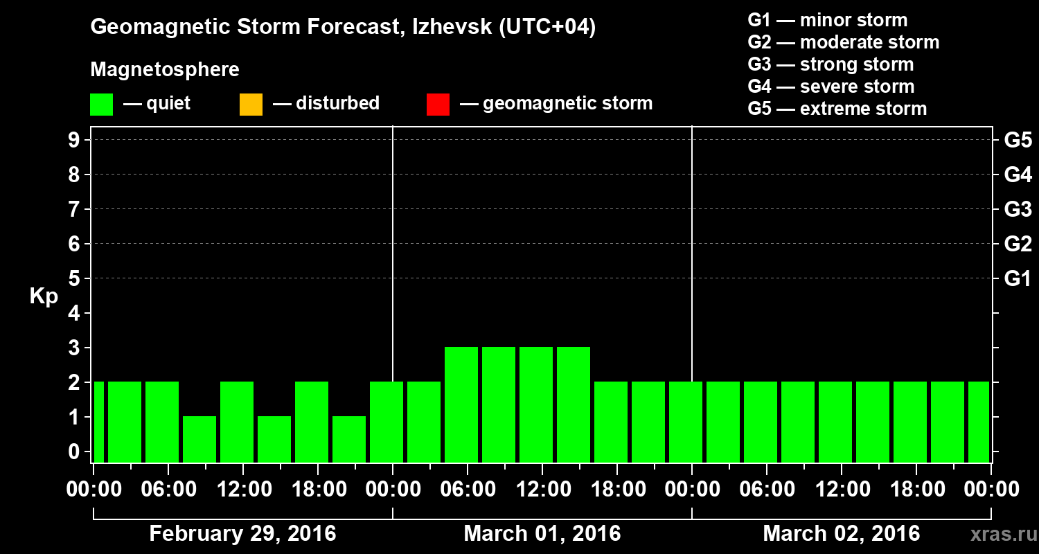 Geomagnetic storm forecast in Izhevsk for Feb 29, 2016