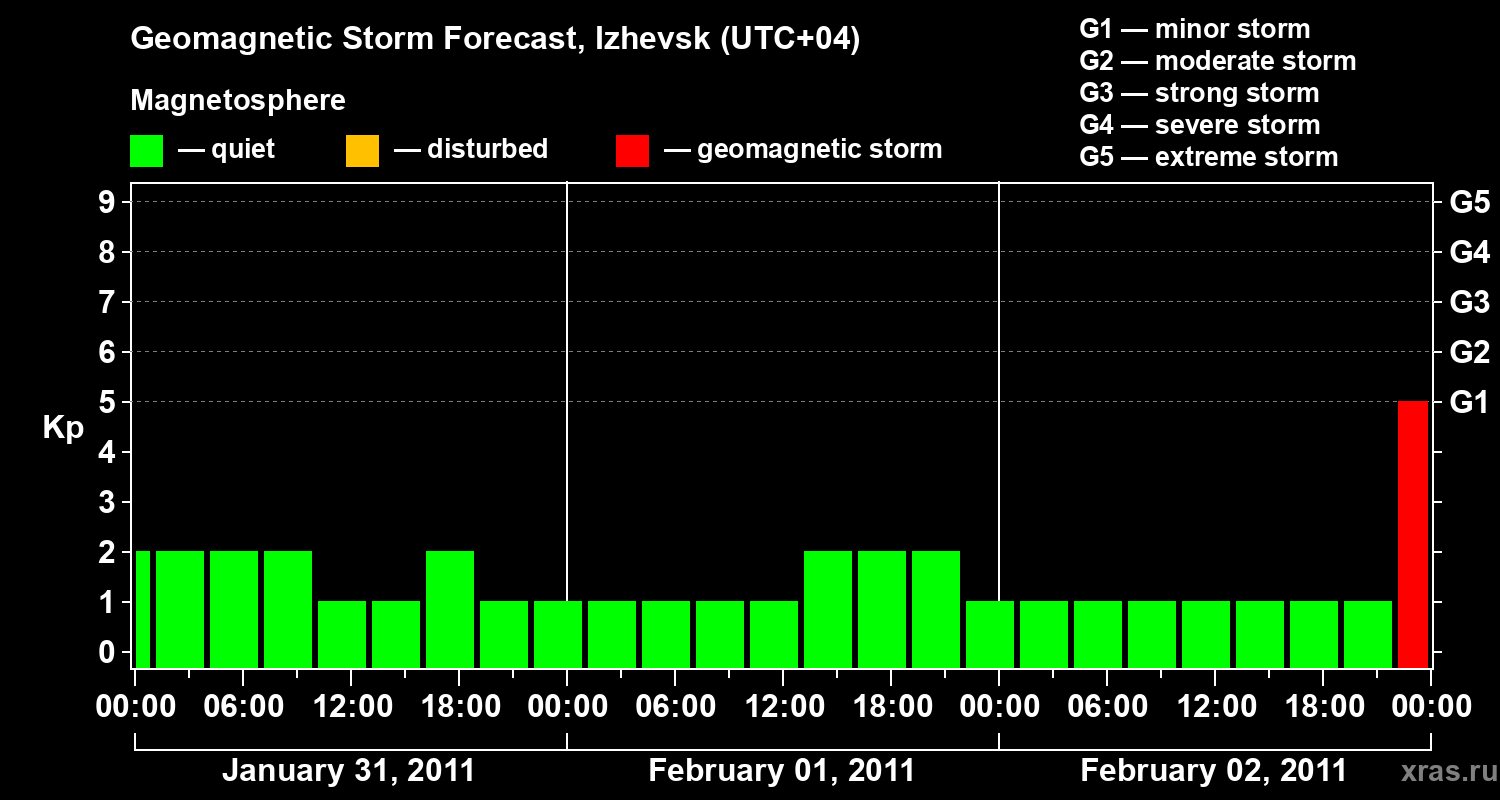 Geomagnetic storm forecast in Izhevsk for Jan 31, 2011