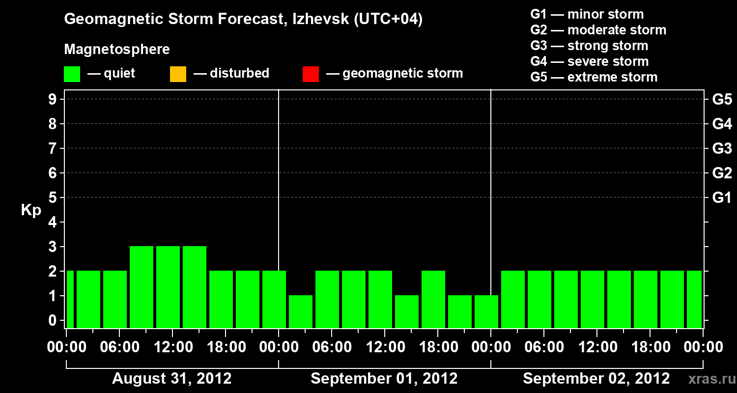 Geomagnetic storm forecast in Izhevsk for Aug 31, 2012
