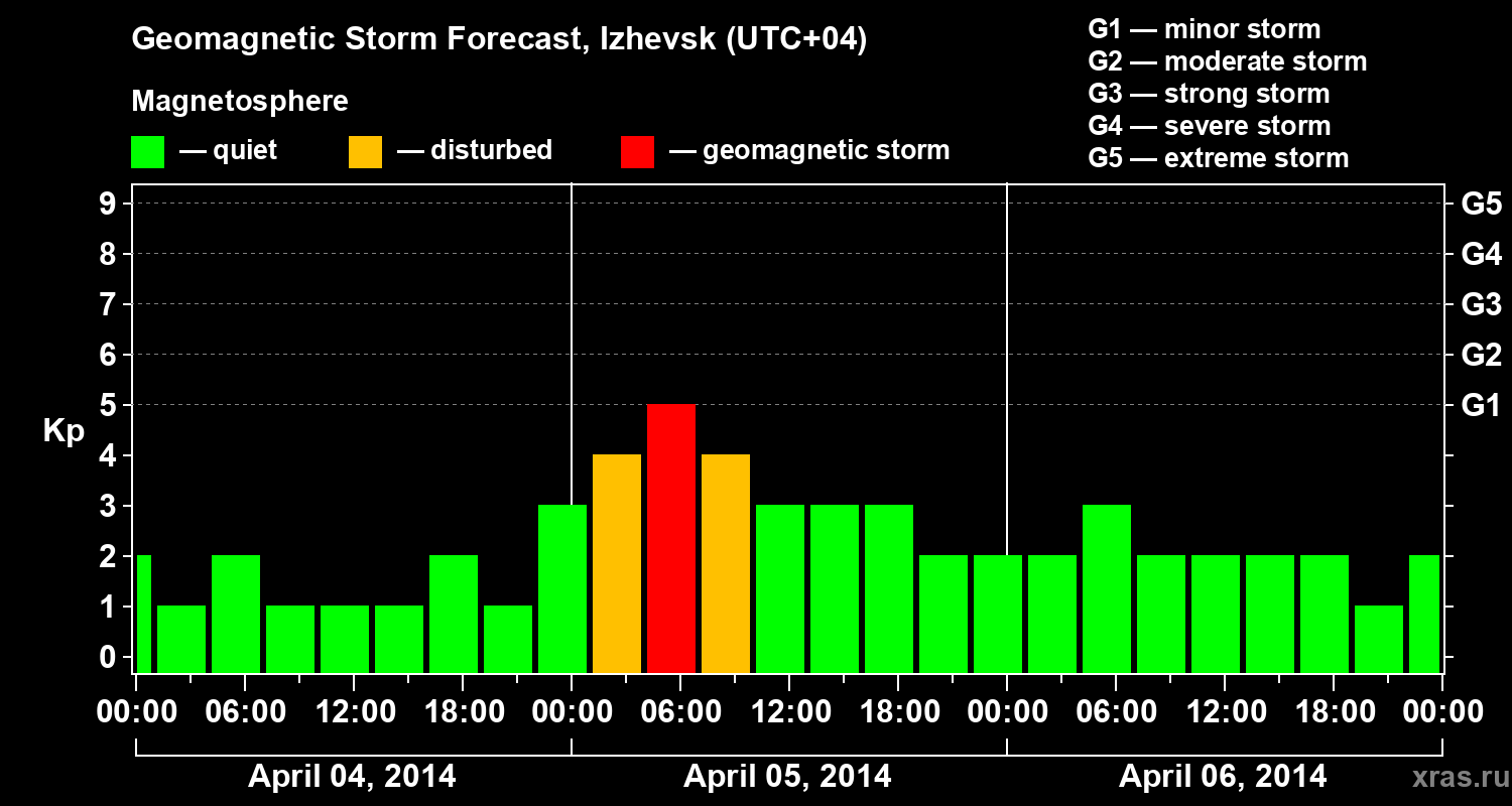 Geomagnetic storm forecast in Izhevsk for Apr 04, 2014