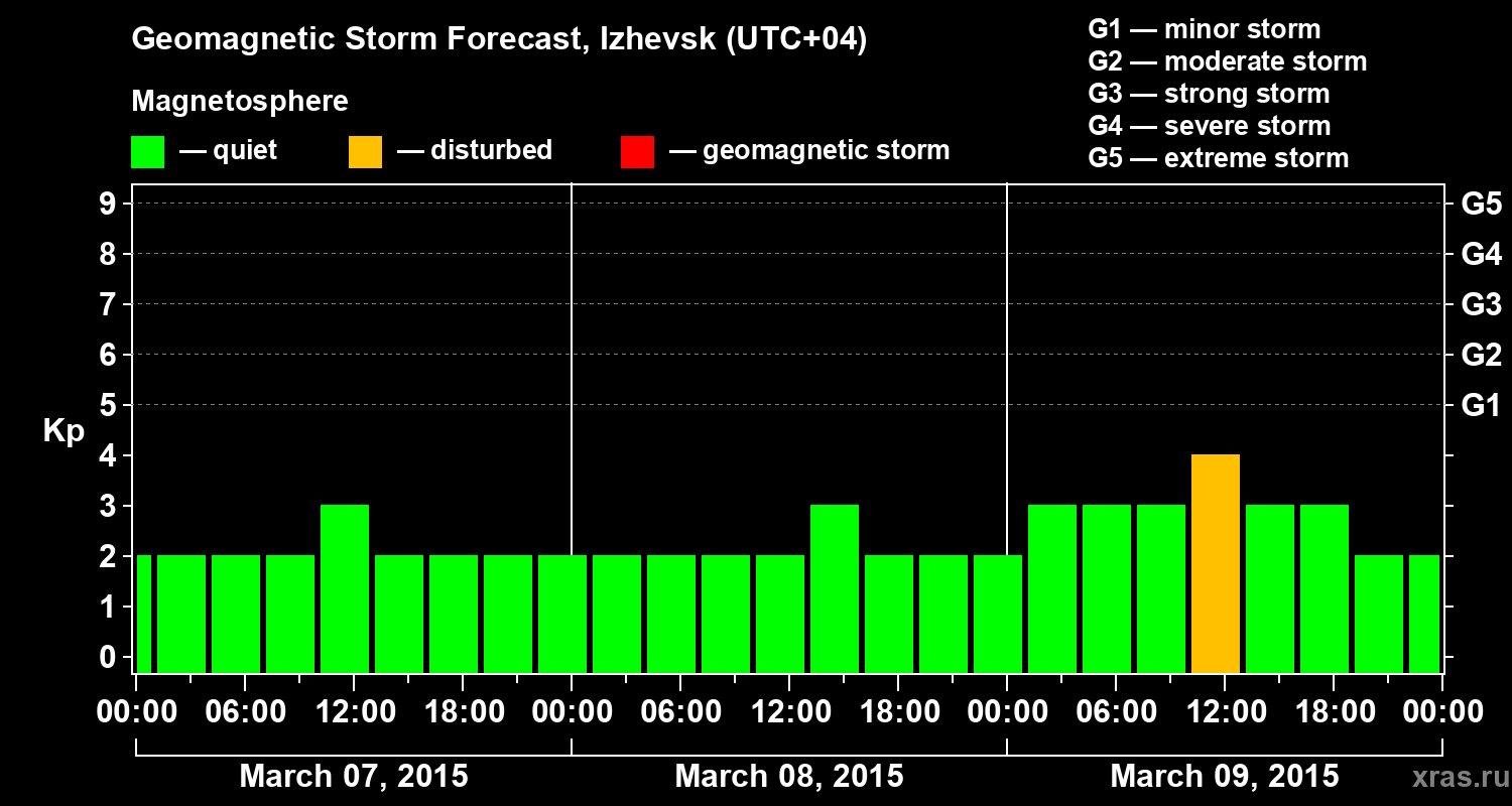 Geomagnetic storm forecast in Izhevsk for Mar 07, 2015