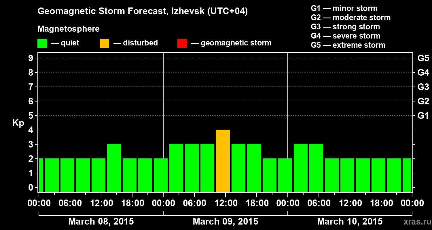 Geomagnetic storm forecast in Izhevsk for Mar 08, 2015