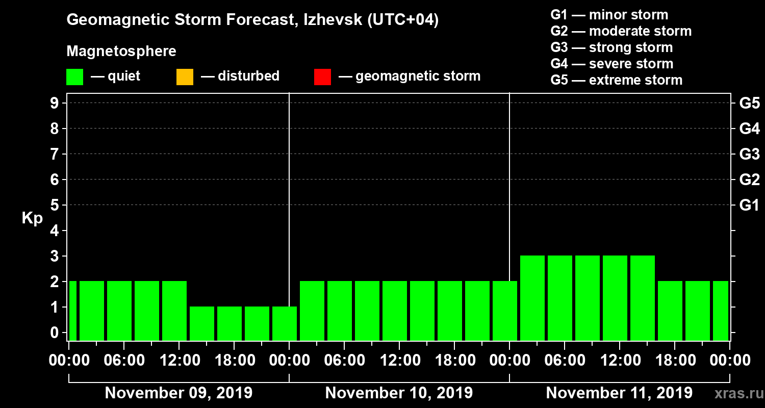 Geomagnetic storm forecast in Izhevsk for Nov 09, 2019
