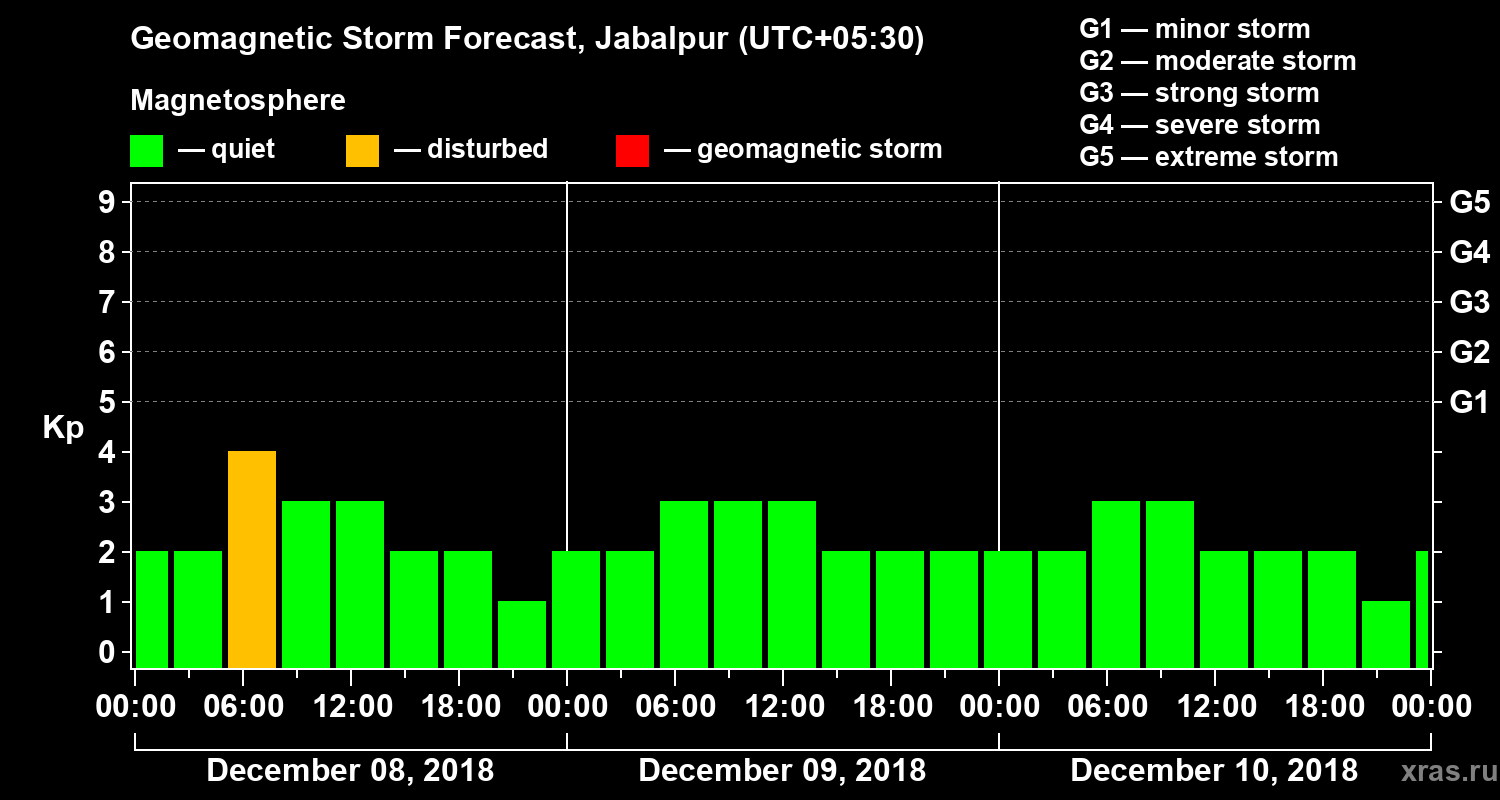 Geomagnetic storm forecast in Jabalpur for Dec 08, 2018