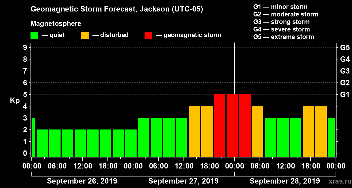 Geomagnetic storm forecast in Jackson for Sep 26, 2019