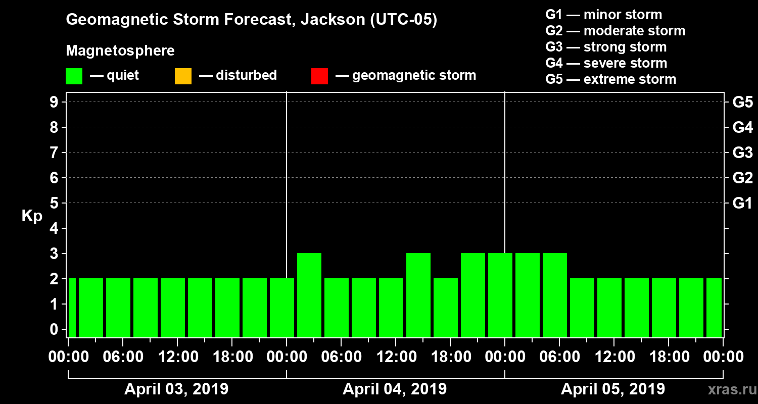 Geomagnetic storm forecast in Jackson for Apr 03, 2019