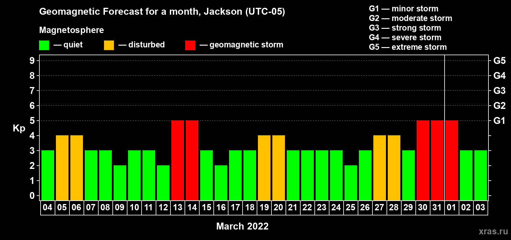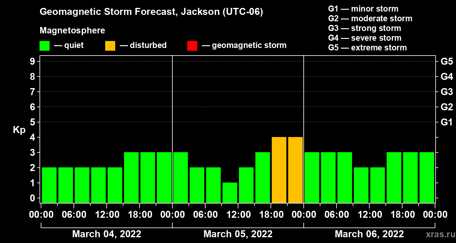Geomagnetic storm forecast in Jackson for Mar 04, 2022