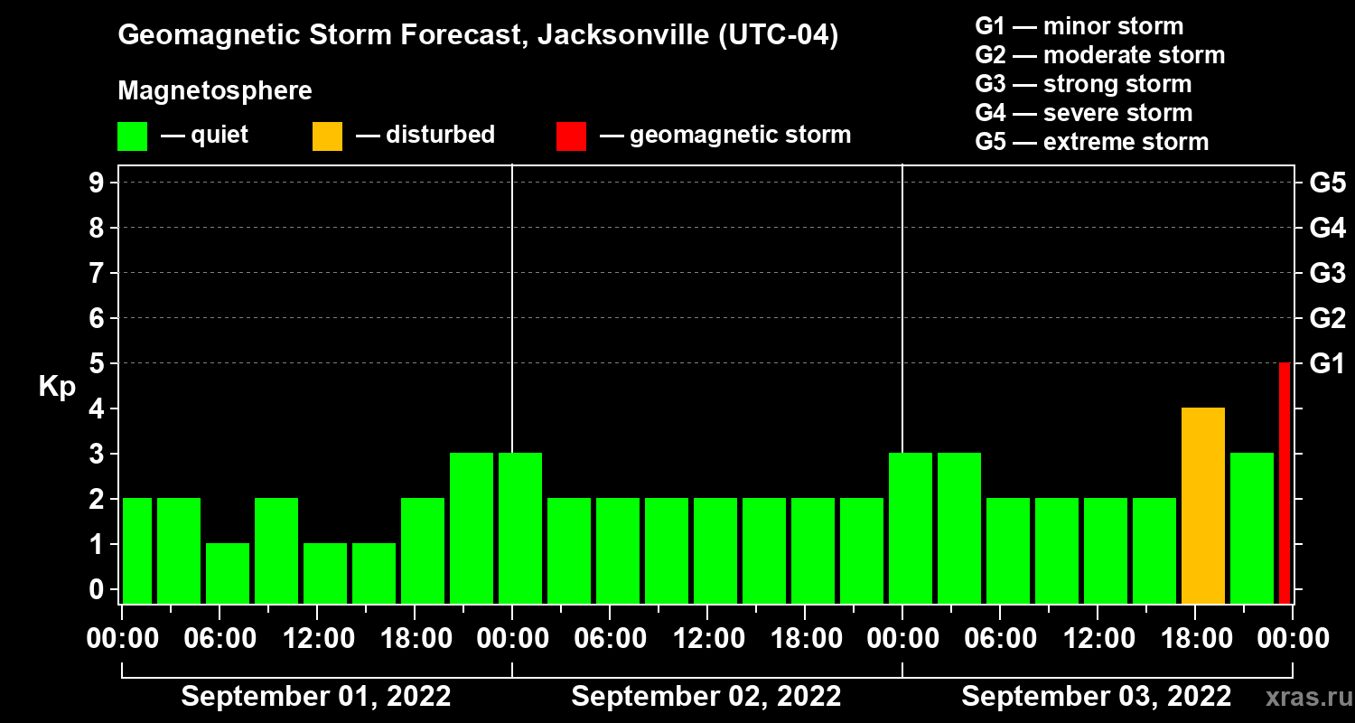 Geomagnetic storm forecast in Jacksonville for Sep 01, 2022