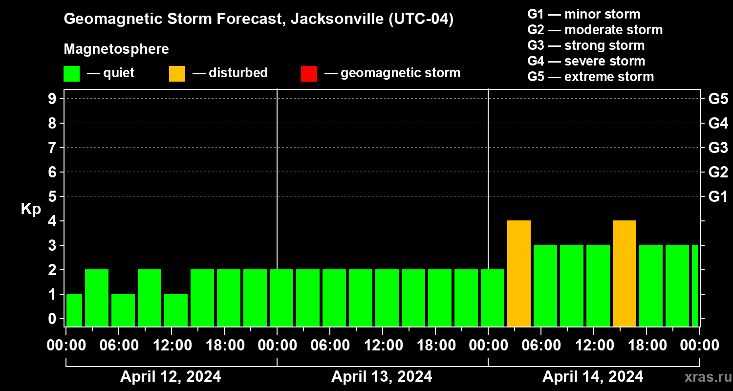 Geomagnetic storm forecast in Jacksonville for Apr 12, 2024
