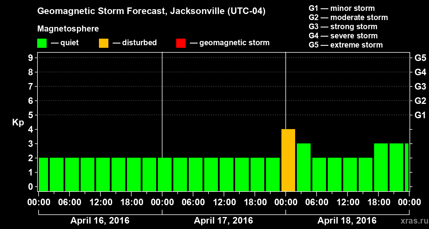 Geomagnetic storm forecast in Jacksonville for Apr 16, 2016