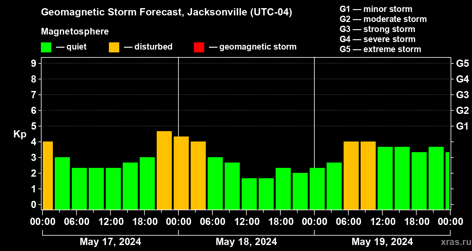 Geomagnetic storm forecast in Jacksonville for May 17, 2024